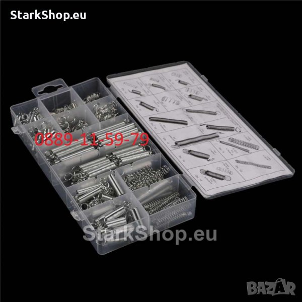 Комплект метални пружини 200 бр. различни размери в удобна кутия за съхранение.