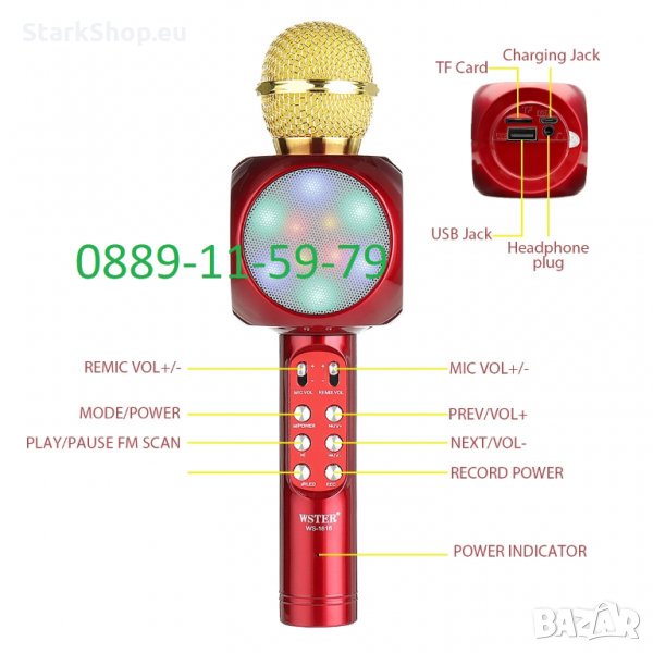 1 бр. Безжичен караоке микрофон WSTER