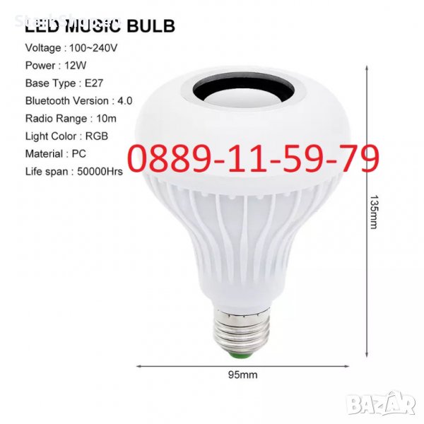 Лампата има различни режими на светене, може само един конкретен цвят, мигащ ефект и много други диско ефекти. Може да изберете само музикален режим, без светещ ефект или обратното, само да свети без да свири. Музиката се пуска чрез блутут – телефон, таблет и др. Лампата може да се изключи от дистанционното, не е нужно да ставате. Включва се в класическа фасунка или полилей. Енергоспестяваща.