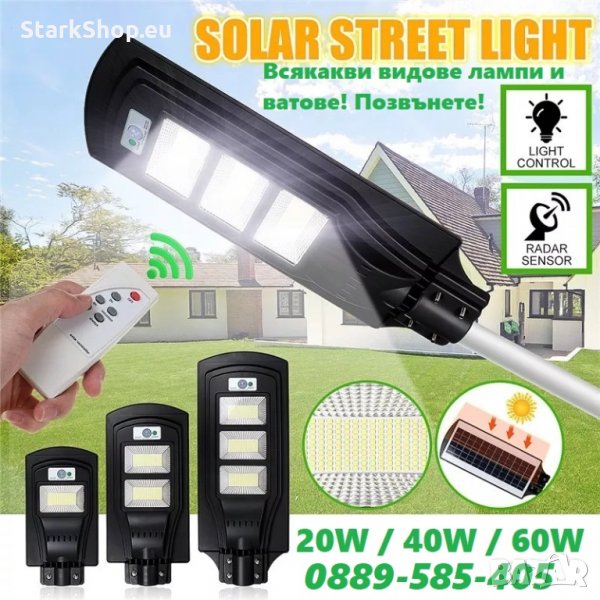 LED соларна улична лампа, е интелигентна система за външно осветление, която интегрира най-добрите енергоспестяващи части – фотоволтаичен панел, осветително тяло, сензор, контролер и литиева батерия, всичко това в една кутия. Подходяща за улица, дом, градина, двор и др.