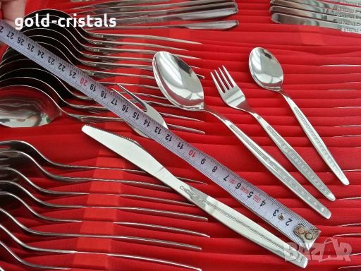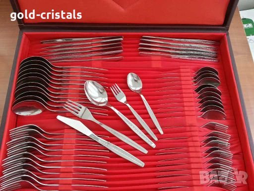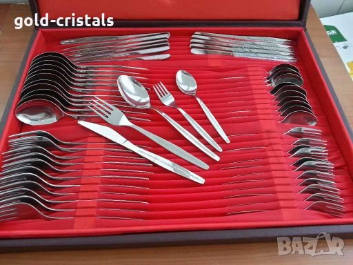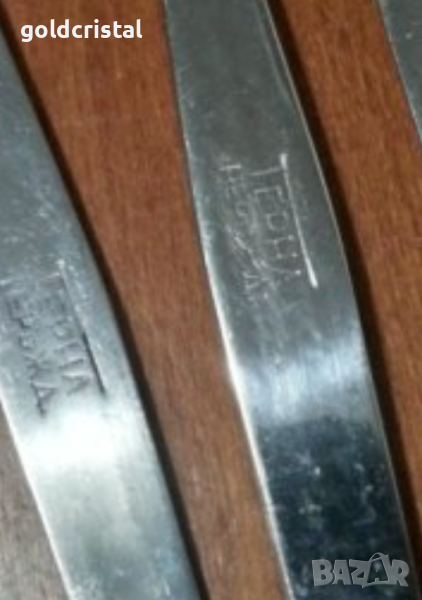 Български прибори за хранене Велико Търново Терна ножове вилици лъжици вилички лъжички. неръждаеми маркирани в кожена кутия сервиз комплект сет лот ретро арт декор винтидж колекция стари старинни антикварни предмети обзавеждане за дома и семейството подходящи за подарък за ценители и колекционери