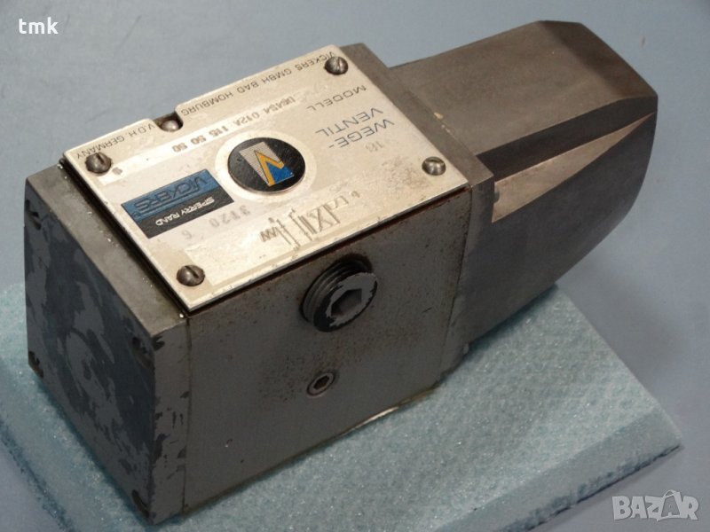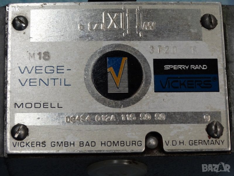 Фирма "Техно Маш Комплект" ЕООД предлага нов, немски хидравличен разпределител с електро-магнитно управление, производство на Vickers. Разпределителят е със следните параметри: