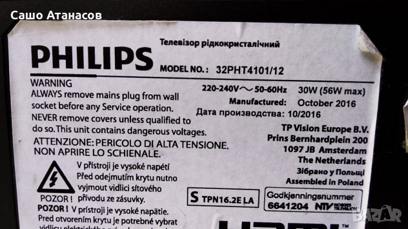 PHILIPS 32PHT4101/12 със счупена матрица ( TPT315B5-DXYSHA.G )