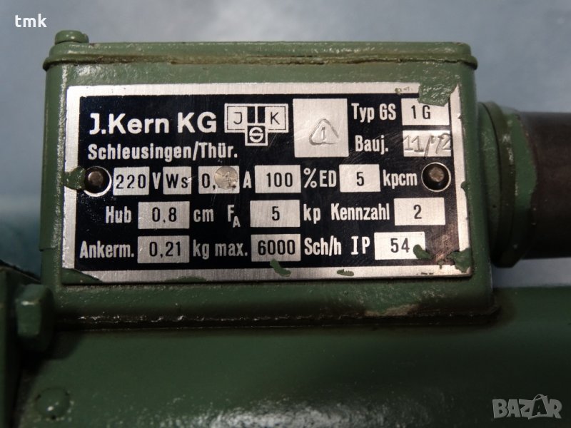 Фирма "Техно Маш Комплект" ЕООД предлага нов, немски хидравличен клапан с електро-магнитно управление, производство на J.KERN KG. Клапана е със следните параметри: