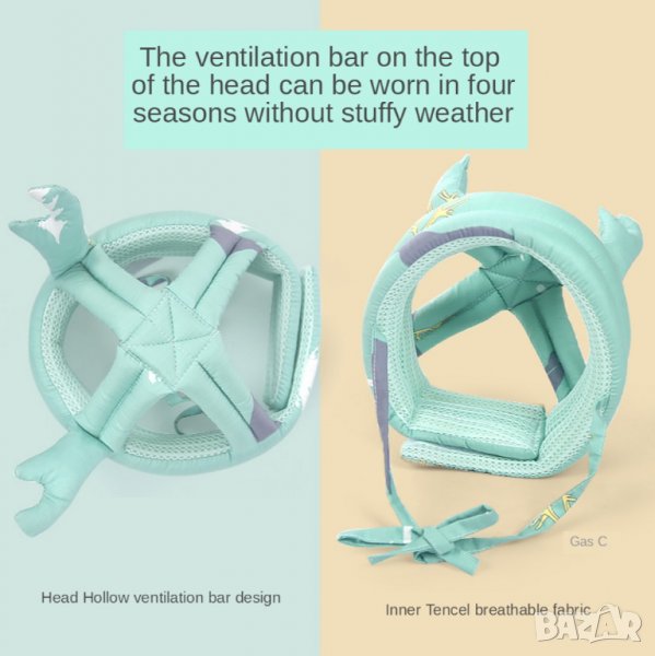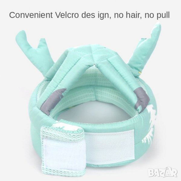 Предпазният шлем за дете, който предлагаме е създаден от специална дишаща материя, която осигурява нужната защита. Изработката е от стабилна пяна и покрива основните точки на главата, така че да не се запарва и да е защитена отвсякъде. В долната си част е предвидена закопчалка, която държи детската каска да не пада. Самата закопчалка държаща шлемът стабилно е облицована с мека материя, която предотвратява протъркване по време на носене.