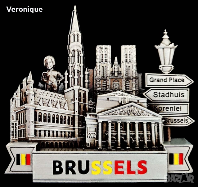 13. Метален магнит Брюксел, Белгия/ Grand Place, Palais Royal de Bruxelles, St. Michael and St. Gudula Cathedral и Manneken Pis; 7.8 x 7.8 cm – 12 лв
