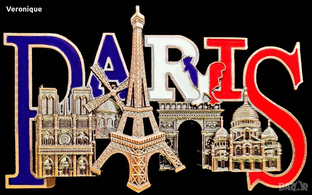 17. Метален магнит Париж,Франция/Айфеловата кула, Св.-Нотърдам дьо Пари, Триумфалната арка и църквата „Сакре Кьор“, 7.7 x 4.6 cm – 12 лв