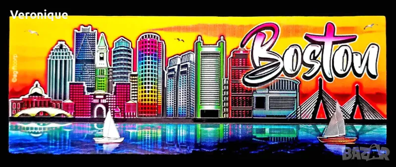5. Метален лазерно обработен магнит Бостън, САЩ / нощен изглед отБостън, Масачузетс; 12.5 x 4.5 cm - 10 лв