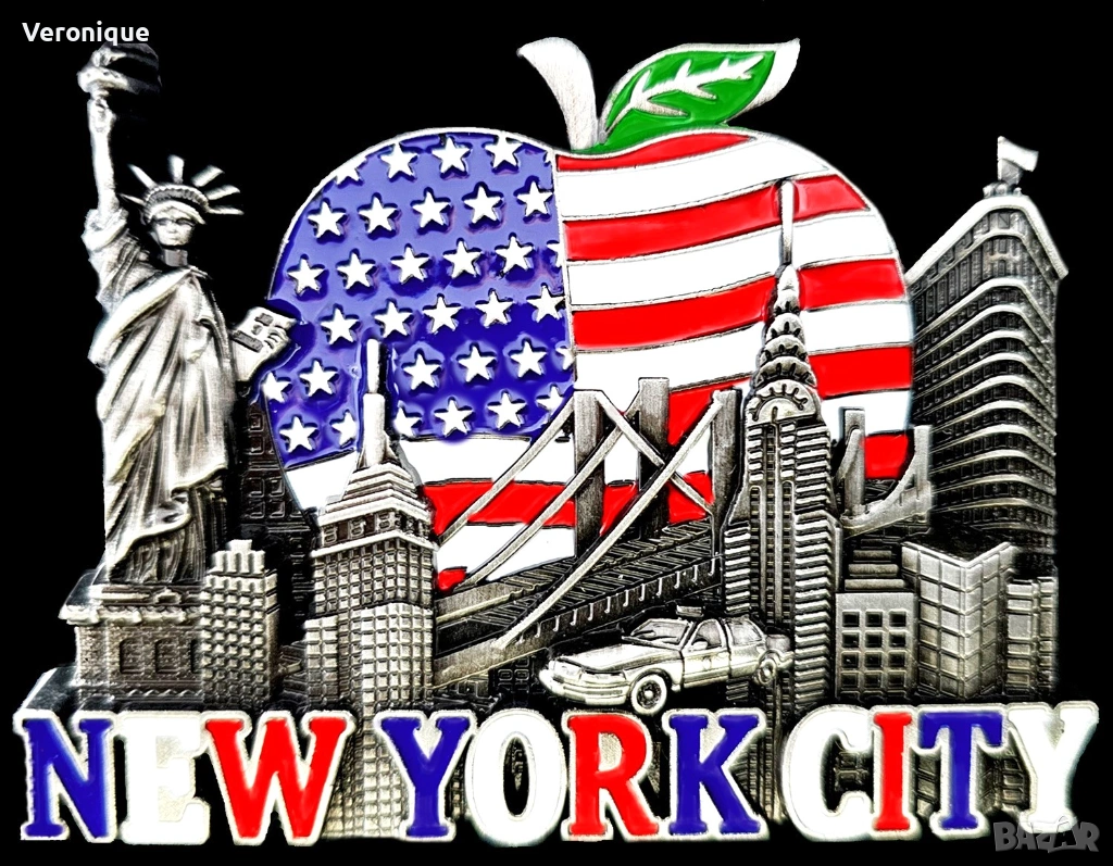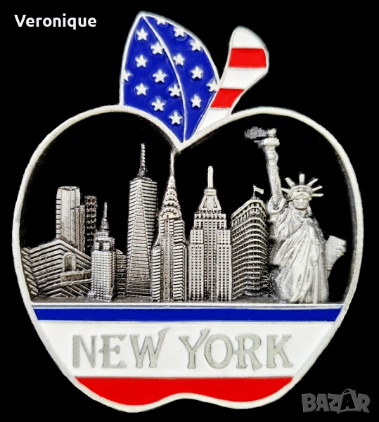 10. Магнит Ню Йорк, САЩ / изглед нa Ню Йорк, наричан Голямата ябълка с американския флаг 6.5 x 7.3cm – 13 лв