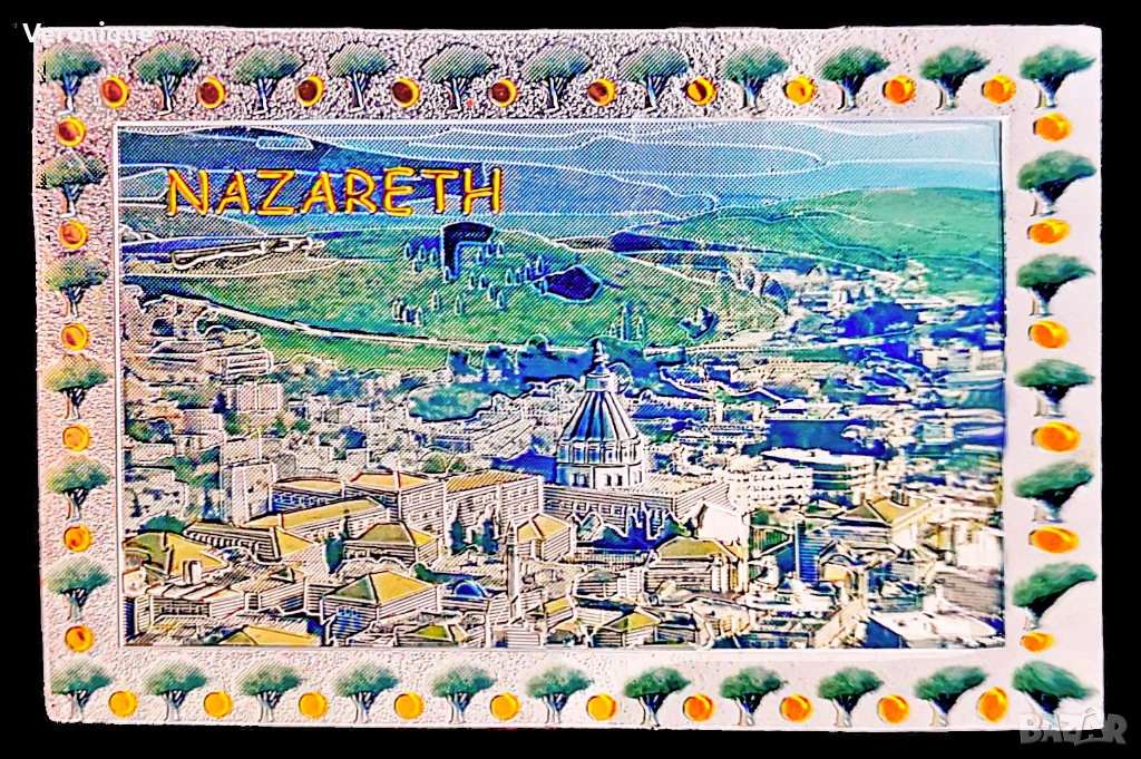 24. Метален лазерно обработен магнит Назарет, Израел / панорама от стария град с Базиликата на Благовещението; 5.8 х 3.8 cm - 8 лв
