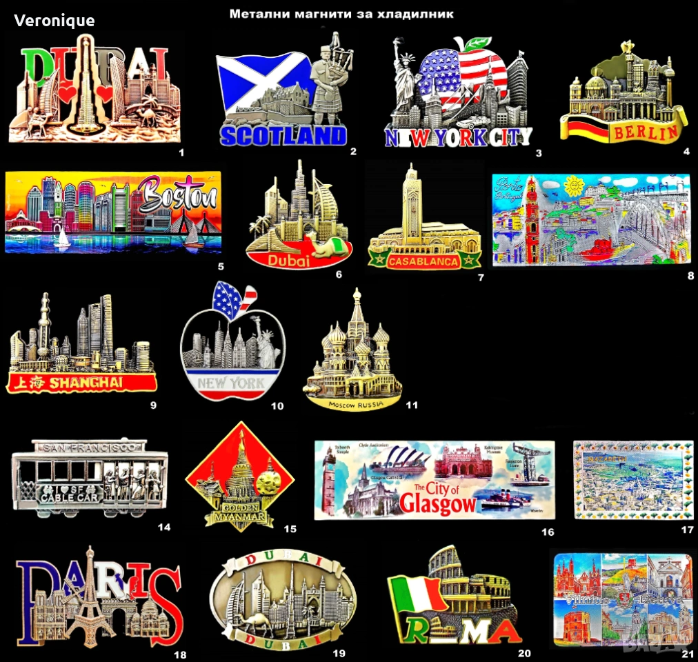 Предлагам колекция от нови метални магнити за хладилник, идеални за вашия дом, колекция или оригинален подарък.