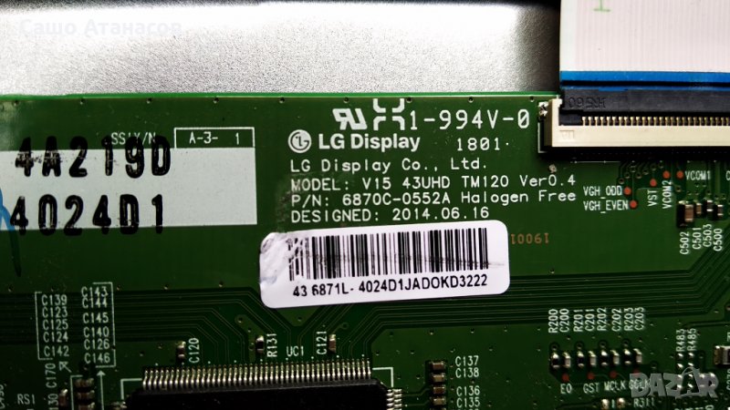 T-Con Board: V15 43UHD TM120 Ver0.4 ( 6870C-0552A Halogen Free / 6871L-4024D1 ) - 50лв.