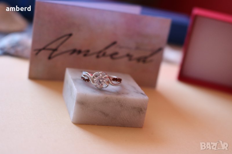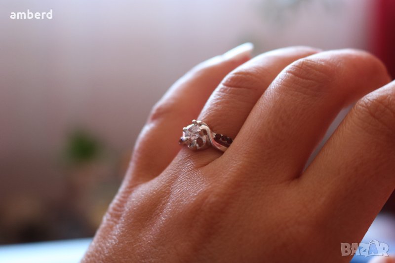 Много красив пръстен - ръчно изработен от сребро проба 925. Вътрешен диаметър - 17.3мм. Можем да изработим този модел в желан от вас размер и цвят камъни. Наличен го има и изцяло с бели циркони.