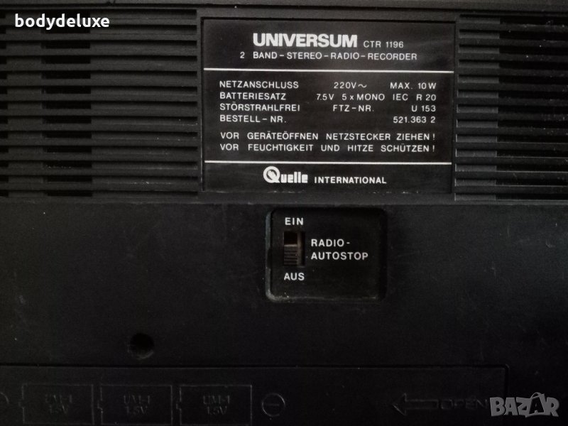 Universum CTR1196 радиокасетофон, снимка 1 - Радиокасетофони, транзистори - 28954572 Universum CTR1196 радиокасетофон, снимка 2 - Радиокасетофони, транзистори - 28954572 Universum CTR1196 радиокасетофон, снимка 3 - Радиокасетофони, транзистори - 28954572 Universum CTR1196 радиокасетофон, снимка 4 - Радиокасетофони, транзистори - 28954572 Universum CTR1196 радиокасетофон, снимка 5 - Радиокасетофони, транзистори - 28954572 Universum CTR1196 радиокасетофон, снимка 6 - Радиокасетофони, транзистори - 28954572 1/6