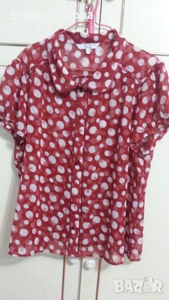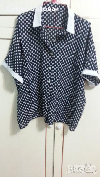 2.Блузка tru blouse№42 черна на бели точки леко ефирна с паднал