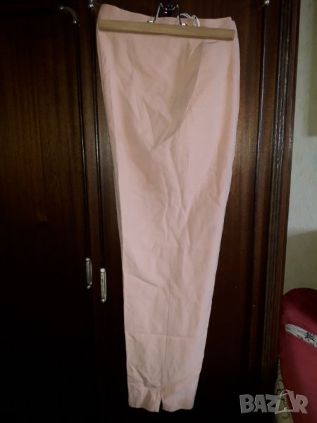 Дамски летен панталон с по-широки крачоли и с басти, цвят розов - пепел от рози, размер М или около № 40-42, талия отпред 40 /или 80 см обиколка/, ханш 54 см /или 108 с/, дължина 97 см. Има и горнище към него по желание. Отговарям на съобщения тук, изпращам с куриер с отстъпка, преглед и тест, или лично предаване в София.