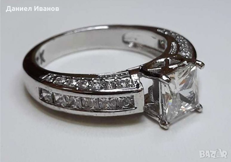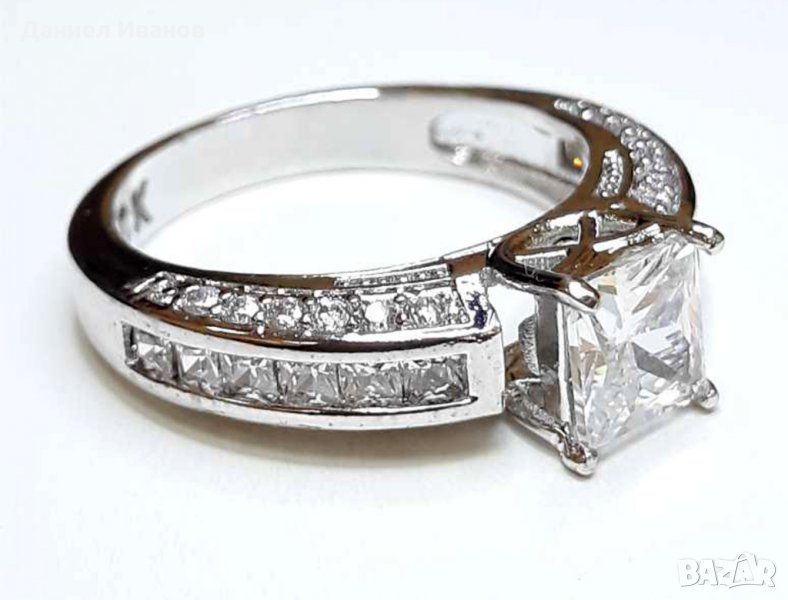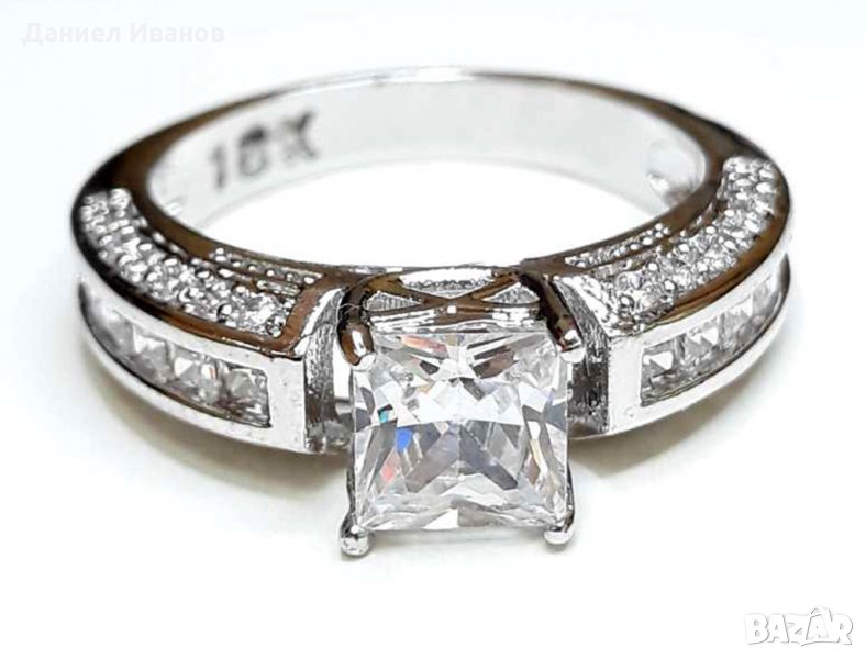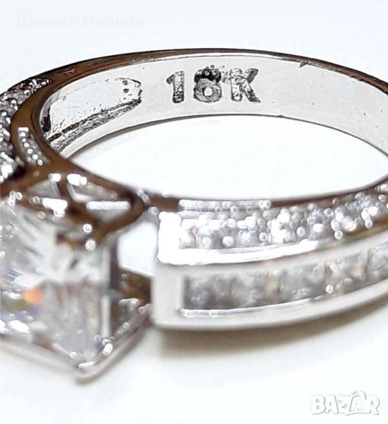 Златен пръстен Бяло Злато 18К със Бели камъни Сваровски НОВ → Обява 28958673