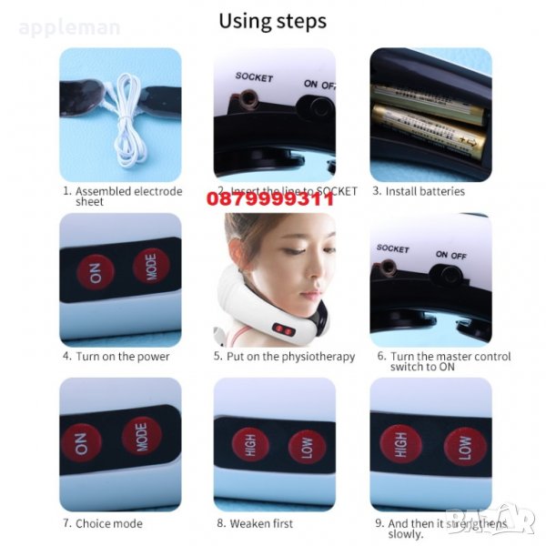 Стоманените проводими плочи на масажьора създават електромагнитни вълни, които облекчават болката във врата. Допълнителните електроди, които се поставят върху възпаления гръб, ще стимулират болните мускули, ще ги отпуснат и регенерират.