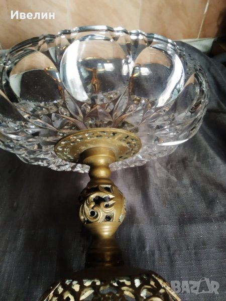 барокова купа,фруктиера.бронзов корпус,кристален съд.височина 29см,до купата 19см,диаметър 21см..