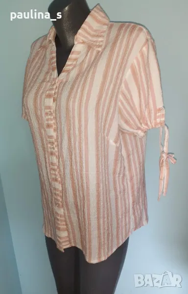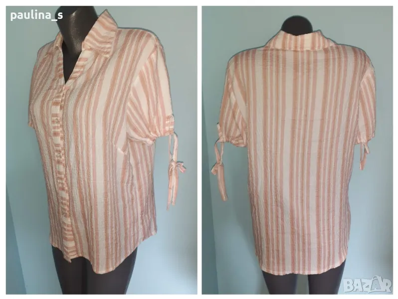 3️⃣. Колаж / L / 2XL - Дизайнерска копринена риза тип туника "M. Maggio" woman fashion. Цената е крайна 19,99лв / 9,8 евро. Дизайнерска риза с буфон ръкави от пясъчна коприна с примеси. Платът е релефен - на вафлички, има лека еластичност. Моделът е леко втален с издължена задна част. Деколтето е шпиц. Копчетата са брандирани, без дефекти и етикет, като нова.