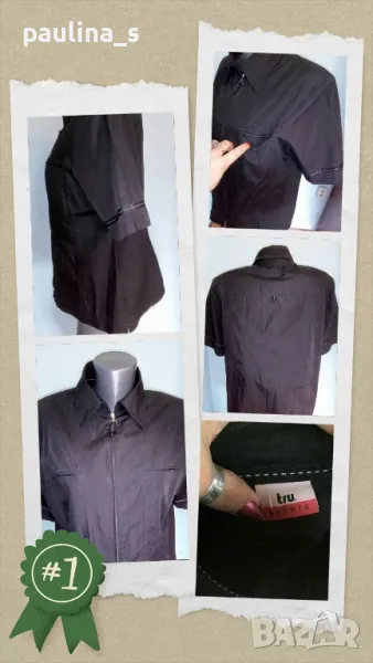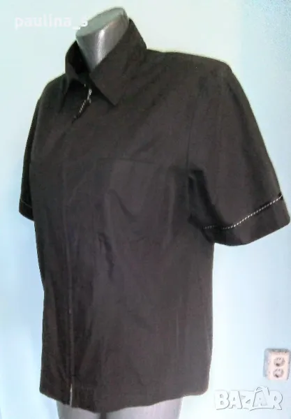 дамска риза с цип. Моделът е втален с декорирани джобчета, ръкави и гръб, цепки на ръкавите и в страни. Изработката е перфектна, като цяло дрехата е на ниво със спортна нокса и с дължина на сако. Материята е полиестер и памук, без еластичност. Не мачкаема е!! Изумителна дреха.