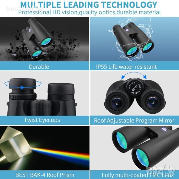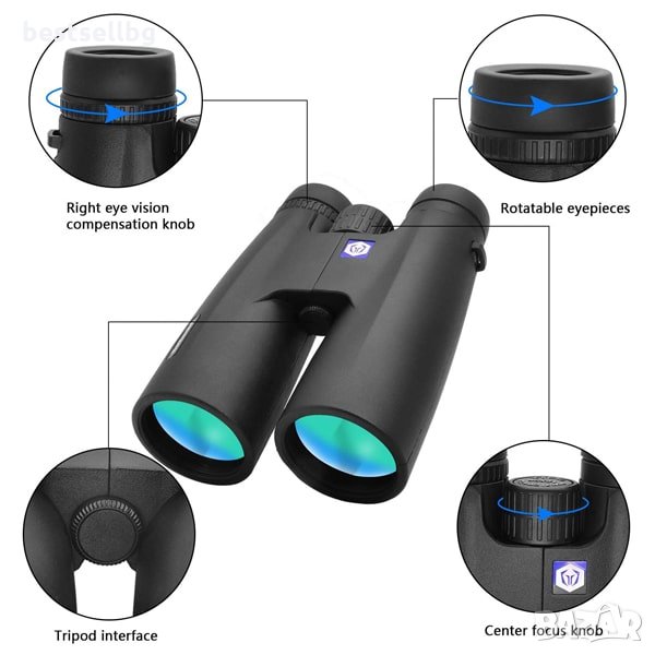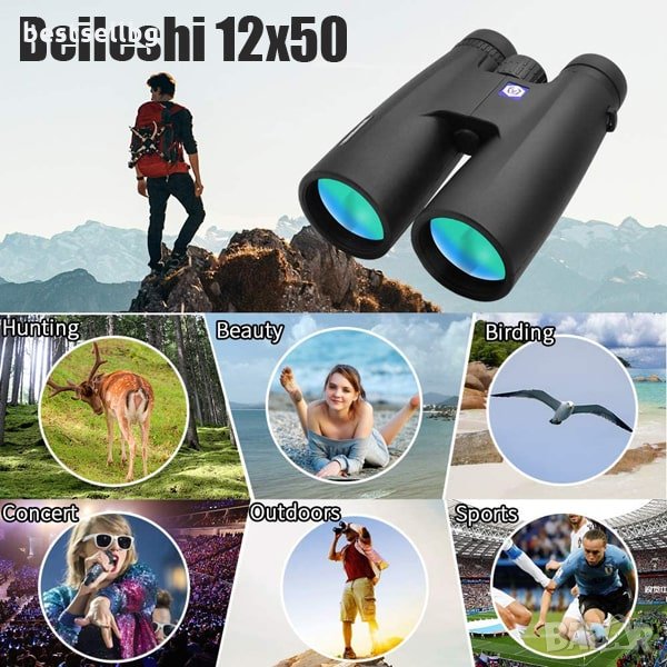 Бинокъл Beileshi 12x50mm HD Vison Professional Roof Prism с увеличение 12 x 50MМ и BaK4 призма за ярки и резки образи в цялото зрително поле с висок индекс на пречупване