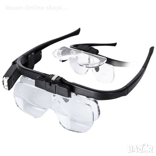 Професионална часовникарска увеличителна лупа за глава тип очила силно LED осветление лампа с различни видове увеличения 1.5Х, 2.0X, 2.5X, 3.5Х, 4.0X, 4.5X за ремонт на часовници, любители, козметик, зъболекар, запояване, четене, шиене на гоблени, бродиране, бродерия, рисуване, проверка на камъни, злато, монети, гледане на лаптоп, монитор, компютър, мобилни смарт телефони, часовникарса за работа, електроника, платки, проверка на лична карта и банкноти, марки, насекоми, електроника, диаманти, документи, маникюр, свободни ръце и др. 11642DC
