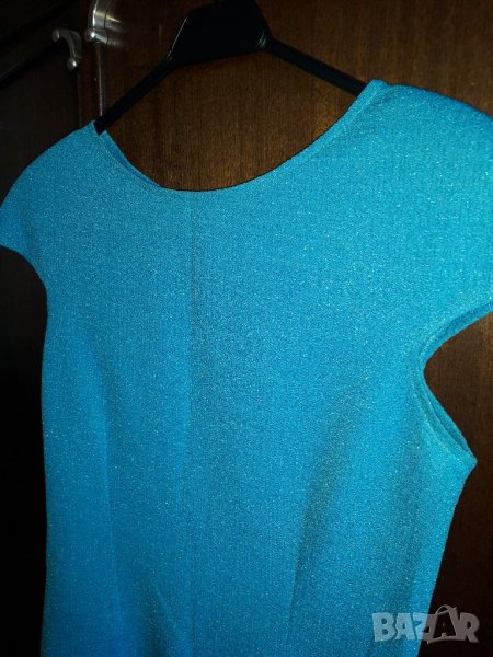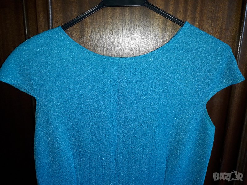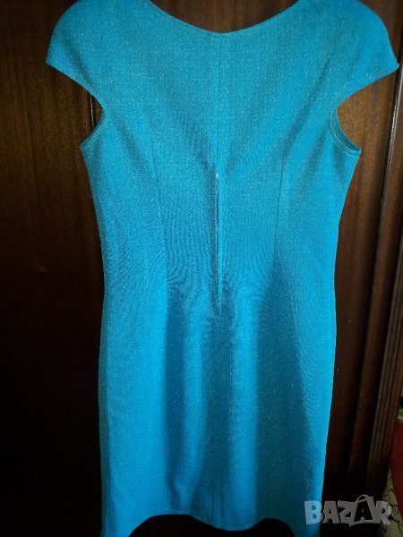 Елегантна рокля с паднало късо ръкавче с подплънки на раменете, без подплата, еластична немачкаема материя, леко вталена и отзад с цип по средата, цвят наситено син. Много хубаво стои и прави фигурата елегантна. Размер М - бюст 42-44 см /или обиколка 84-88см/, талия 38-40см /или 76 см-80 см обиколка/, ханш 50 см /100 см обиколка/, средна дължина на роклята - 97 см /около коляното/. Отговарям на съобщения тук, изпращам с куриер с отстъпка, преглед и тест, или лично предаване в София.