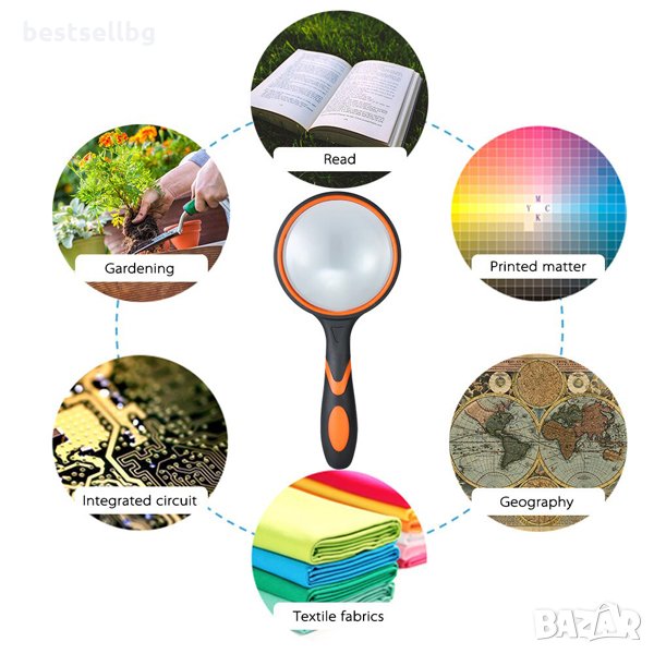 Увеличителна мощна стъклена голяма ръчна лупа с увеличени 3X и диаметър 100мм за четене, работа, деца, козметик, часовникарска, злато, електроника, рисунки, телефон, монитор, компютър, монети, маникюр, платки, проверка на камъни лична карта и банкноти, диаманти, документи, декстоп, насекоми, маса, марки