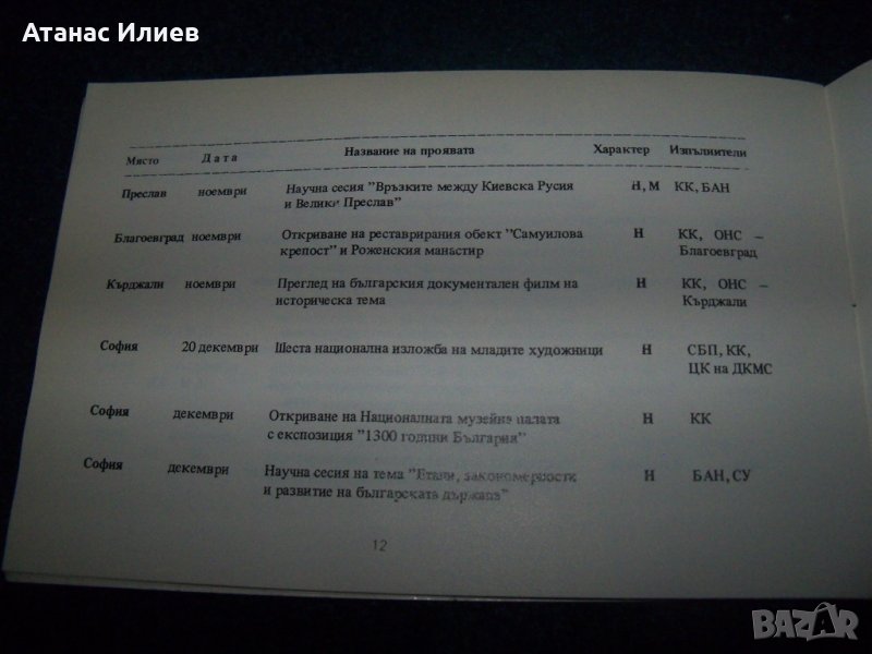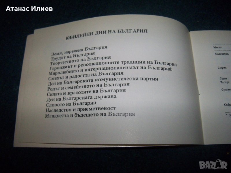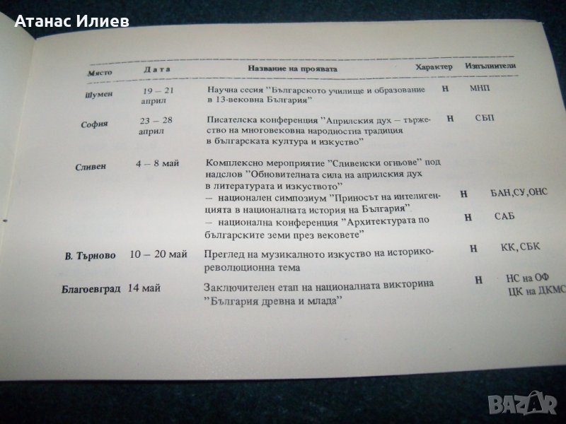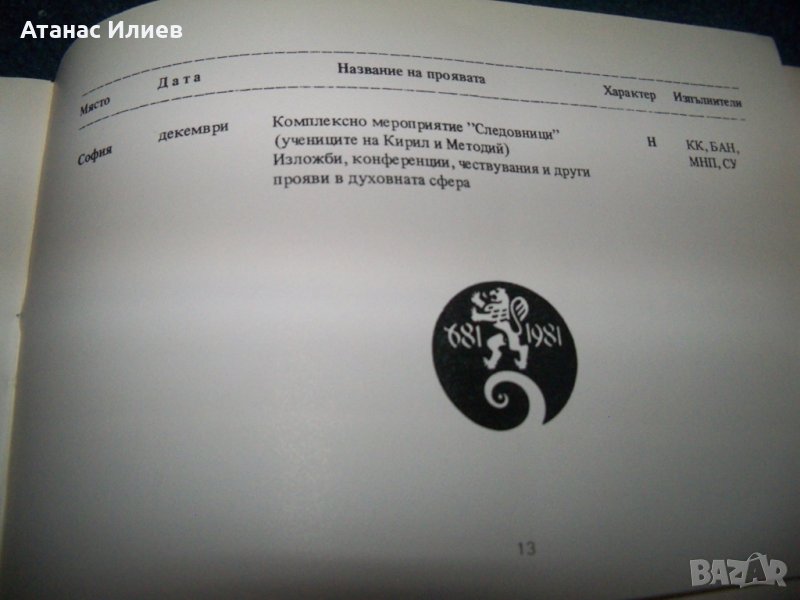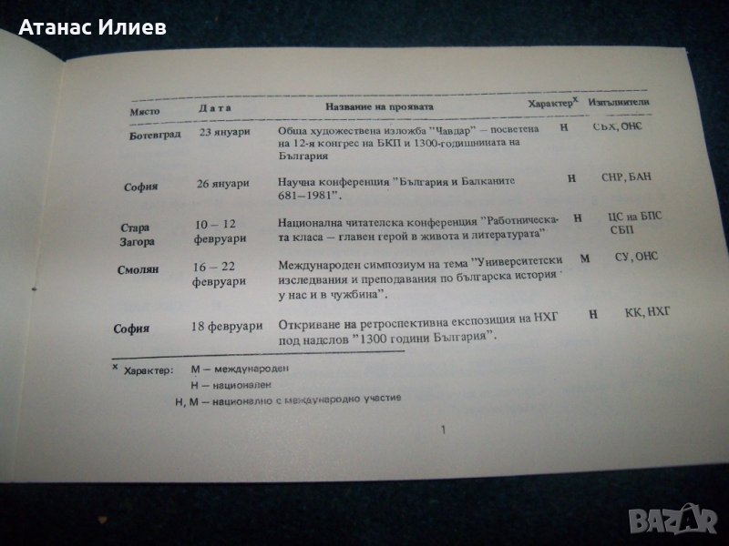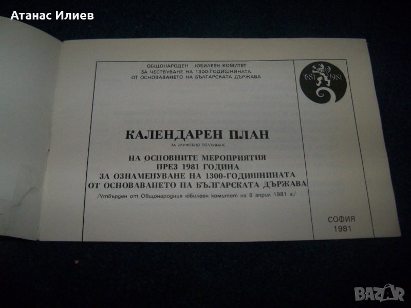 Календарен план на основните мероприятия през 1981г. за ознаменуване на 1300-годишнината от основаването на Българската държава. Брошурата е предназначена само за служебно ползване и е издадена от "Общонароден юбилеен комитет за чествуване на 1300-годишнината от основаването на Българската държава.Брошурата е 14 стр. с меки гланцирани корици.