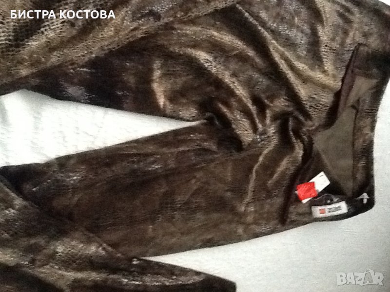 Панталонът е нов с етикет, кафяв на цвят с тигрови щампи.