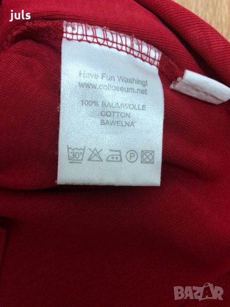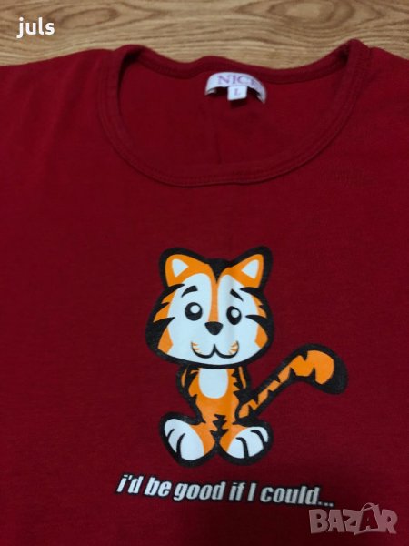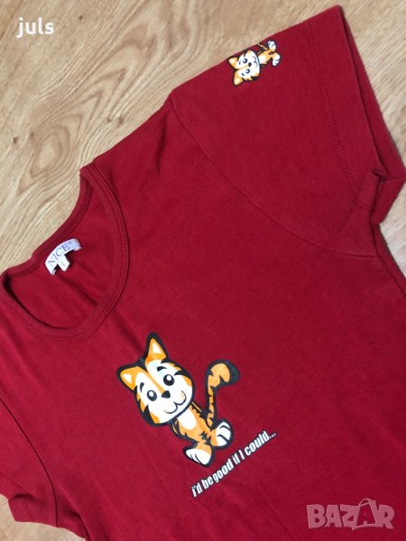 Червена тениска NICE (на Colloseum) с апликация тигърче, по етикет L, но отговаря по-скоро на M-L.