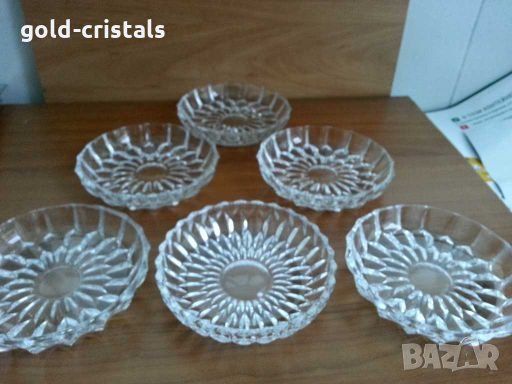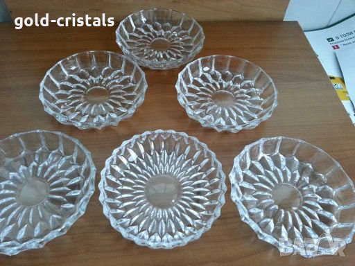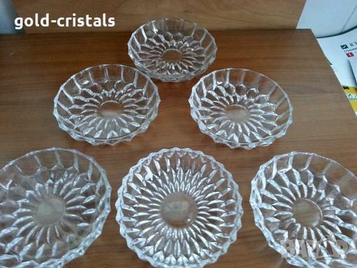 ретро кристални чинии купички без забележки 6 бр едната леко по различна кристално стъкло масивен тежък кристал немски кристал ретро арт декор винтидж колекция старинни антикварни предмети обзавеждане за дома и семейството подходящи за подарък за ценители и колекционери