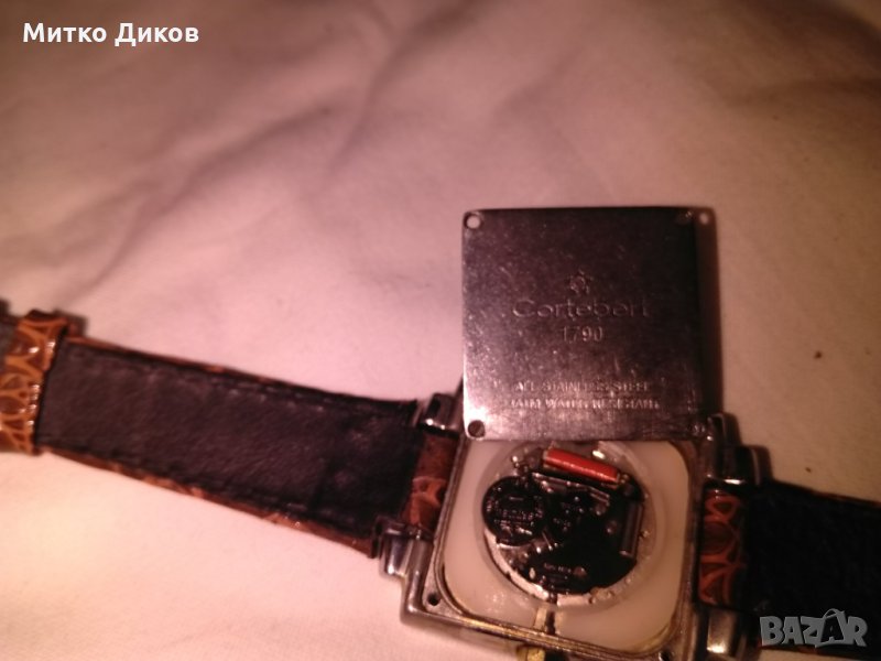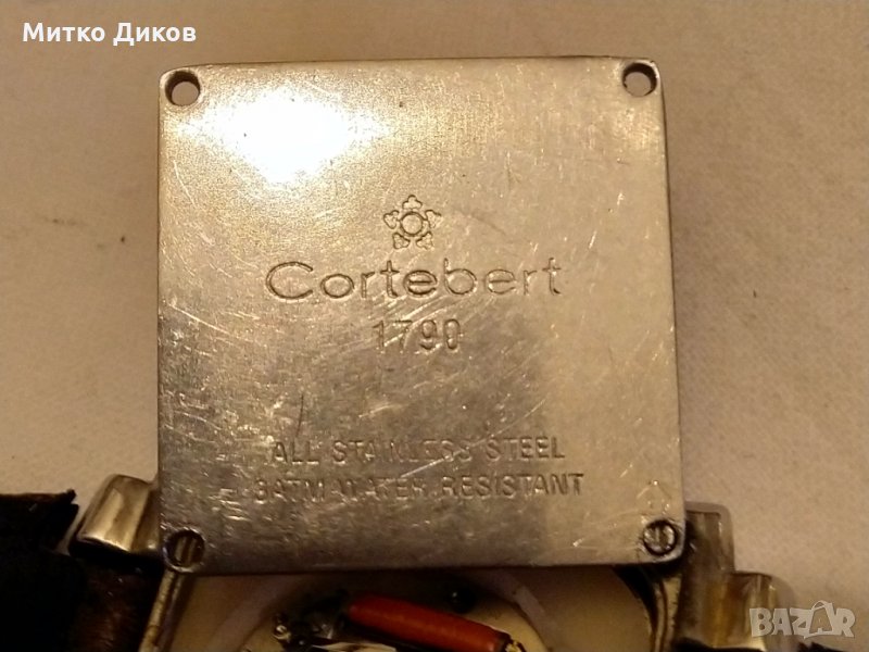 Cortebert 1790 кварцов часовник ронда машина 1 рубин произведен в Щвейцария работи точно-верижка естествена кожа -водоустойчив-30м -3атм.-дата-размер 30х32мм корпус -дебелина 0,8мм-в многодобро състояние-под датата има надпис Маде ин Суис-изпращам- по спиди-по еконт с отстъпка