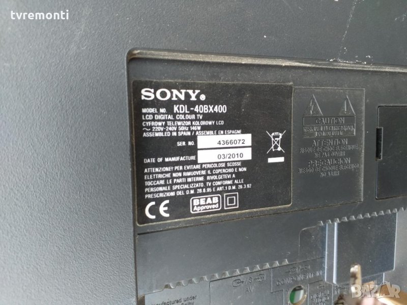 T-CON BOARD FHD_MB4_C2LV1.4 SONY KDL-32EX403, KDL-40BX400 PANEL LTY400HM01 BOARD VENDOR:LJ9403055J-IC LAU4041X1A-Q, LD1117, MAX17121E, I7975, 402WP, MAX9591ETU, MAX17122ETL Main Board 1-881-019-13 Старателно тествана от нашия техник и обновен нашия техник