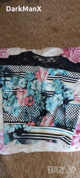 Блузката на цветя. Размери: Дължина 60 см. Ширина в ханша 40 см. Подмишници 64 см. Цена 15 лв.
