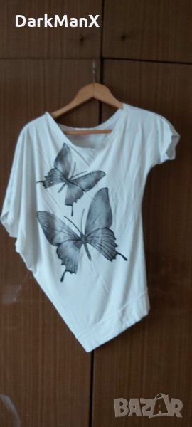 Бяла с пеперудки. Размери: Дължина 70 см. В най-дългата част. Подмишници 50 см. Цена 5 лв.