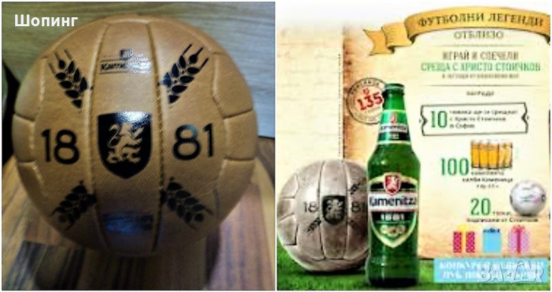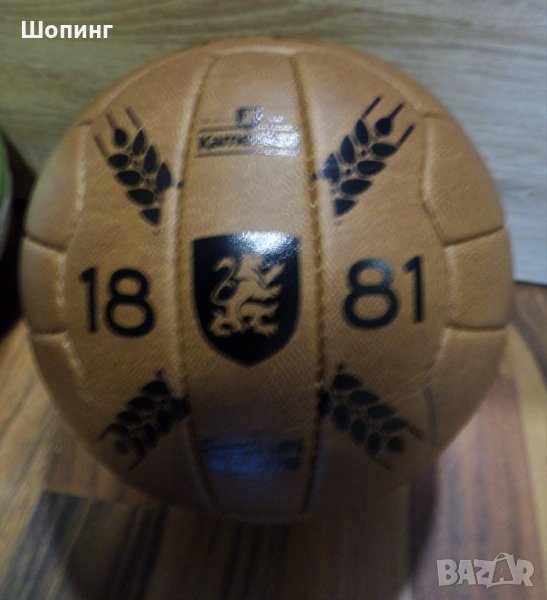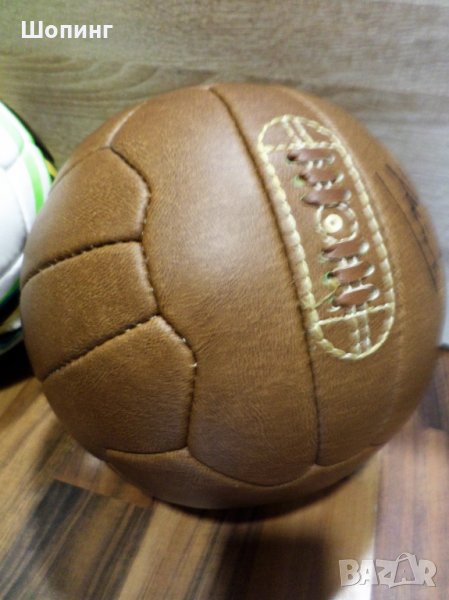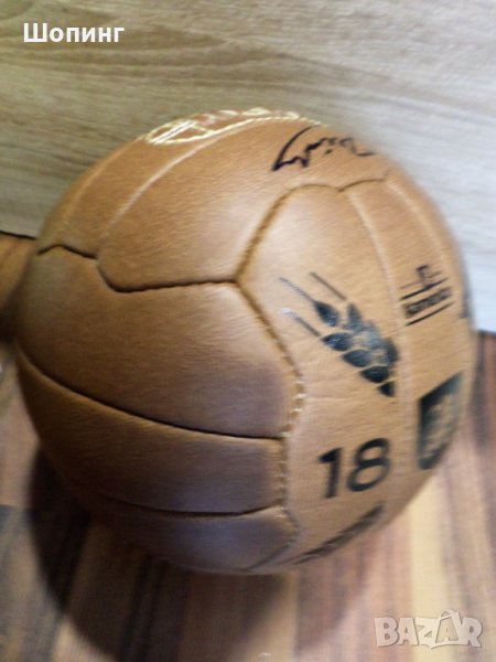 Кожена винтидж футболна топка с автограф от Христо Стоичков - спечелена награда от Каменица за юбилей от 2016-та година.