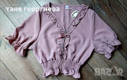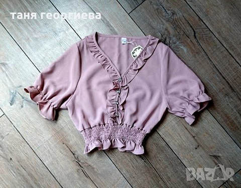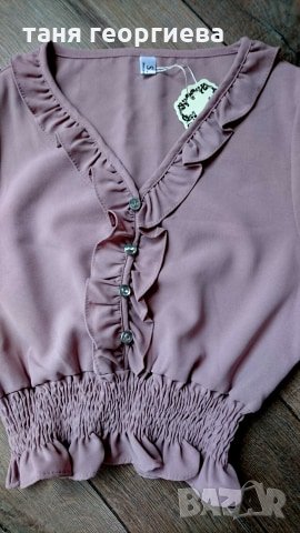 Нова,кокетна блузка в цвят пепел от рози И В БЯЛО, с ластик на кръста ,прекрасни копчета за декорация,р-ри-дълж-44см,бюст-86см