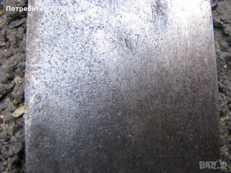 Над 200 годишно мачете от армията на Боливар,революционер,генерал и президент на Колумбия,освободител на много държави от испанските им завоеватели.По острието има на места ситни язвички,но като цяло е много запазено.Има много маркировки,които са се позатрили.Дръжката е с чирени от биволски рог,на места имат съвсем леко понаядено,но нямат спуквания или цепнатини и са без луфт.