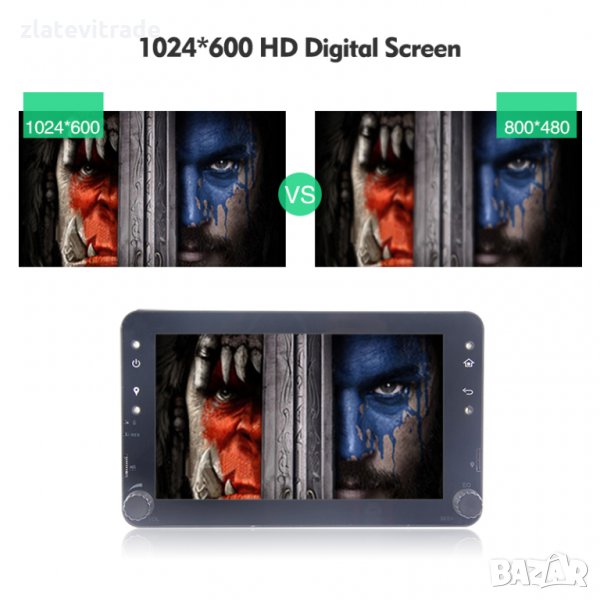 - дисплей с автоматично регулиране дневен/нощен режим в зависимост от интериорното осветление на автомобила и 1024/600 резолюция - HD капацитивен тъч
