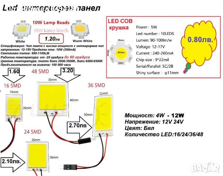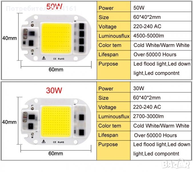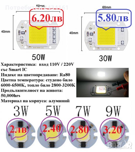 Модел с Led Chip: COB Smart IC чип