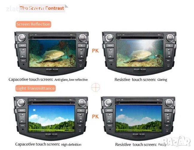 - дисплей с автоматично регулиране дневен/нощен режим в зависимост от интериорното осветление на автомобила и 1024/600 резолюция - HD капацитивен тъч