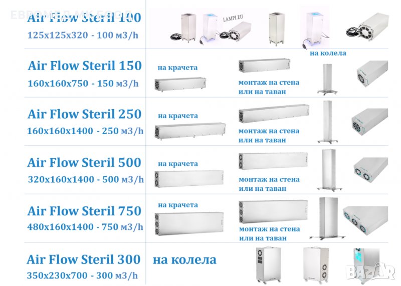 на хора в помещението. Може да се инсталира в медицински и стоматологични