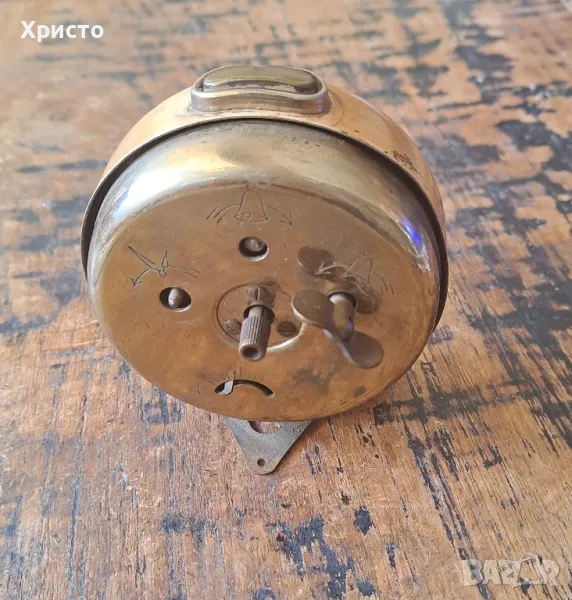 Продавам часовник стар немски Kaiser Brilliant Duett , антика уникат. Много рядък от 1940 - 1950 година. Не работи, но като се разклати механизмът тръгва и се чува 10-15 секунди. За бюро, висок 10 см, циферблат ф 8 см.