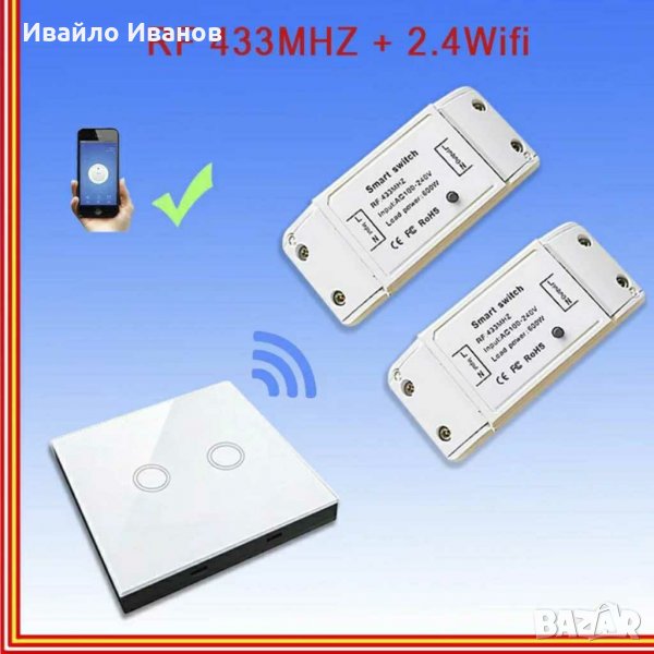 #тъч ключ 2 линии RF433 - 45лв.