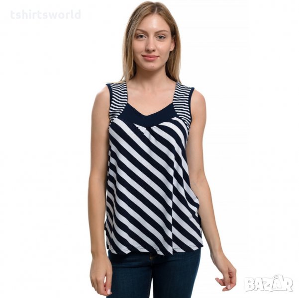Нова дамска елегантна моряшка блуза без ръкави, райе