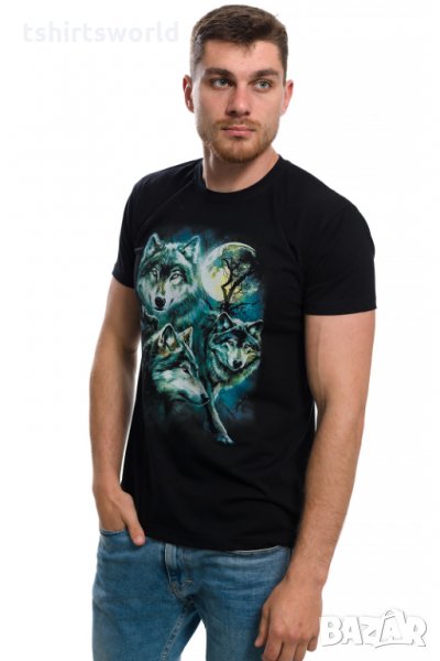 Нова мъжка тениска с дигитален печат Вълци, пълнолуние, Серия вълци
