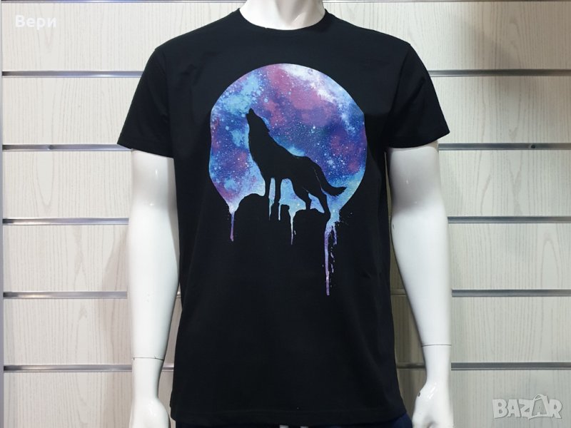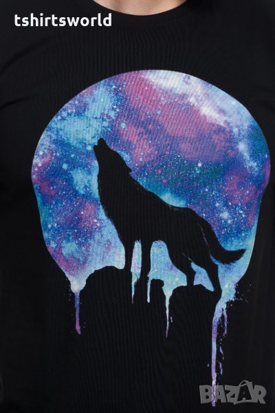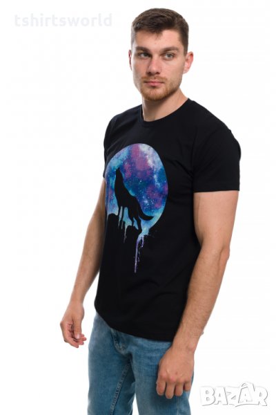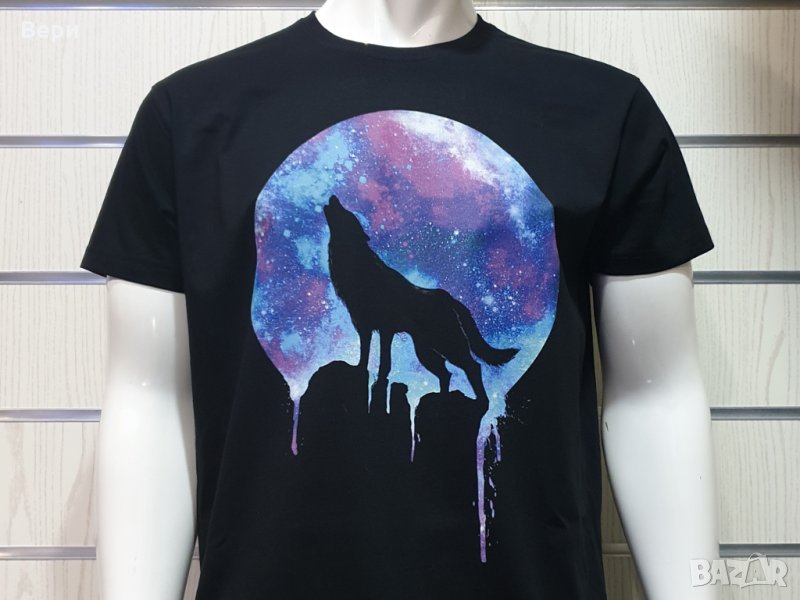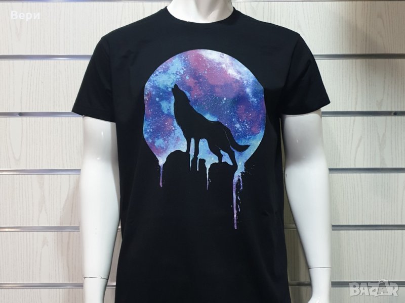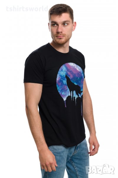 Нова мъжка тениска с дигитален печат Вълк - Луна, Серия вълци
