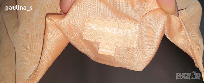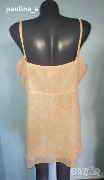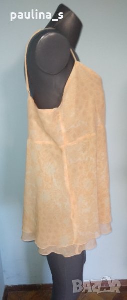 1️⃣. Колаж / L / 2XL - "X - Mail". Цената е крайна 14,99лв / 7,5 евро. Брандова туника голям размер 42/44 EU, от шифон в оранж и праскова. Моделът е с бюстие, разкроен в долната част и двупластов. Презрамките се регулират по дължина. Има леки поправки в страничните тегели на бюстието, което е с хастар.
